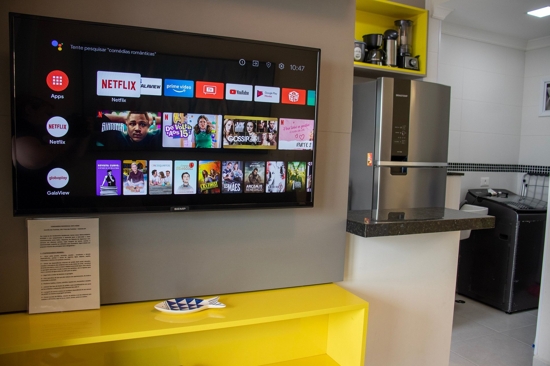 • TV na sala e nos quartos com canais aberto e streams.