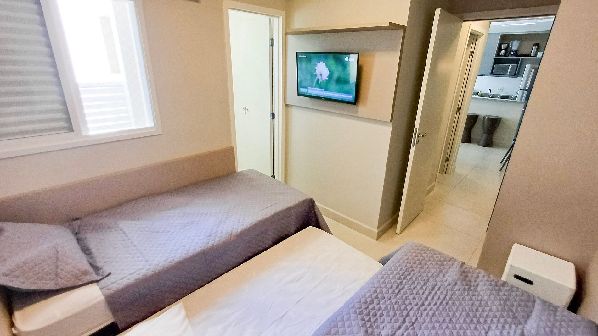 • TV smart na sala e nos quartos com canais aberto e streams.